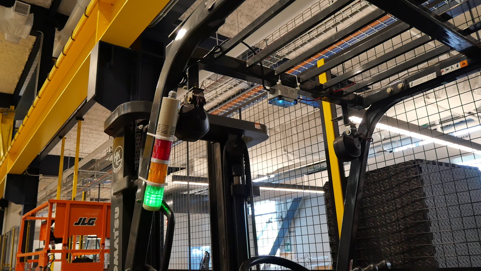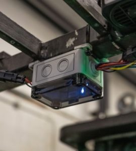 The Proximity Sensor will detect any item (fixed of moving) that is within a few feet from the forklift. On detection of nearby objects, the proximity sensor can slow or stop a forklift. The slow or stop behavior can be configured based on the the users policies. The proximity sensor can also be used to determine the height of the mast and alert an operator when the mast is too high The proximity sensor has an integrated impact sensor that can detect an impact and report it to the appropriate manager. The impact sensor can also trigger a stop condition for the forklift after impact.